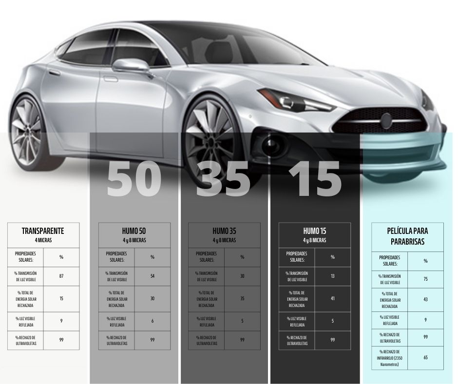 -Las películas reducen el Calor, no la visibilidad. Ayudan a mantener la temperatura en superficies interiores de vehículos mucho más fresco en comparación con vidrios desprotegidos.
